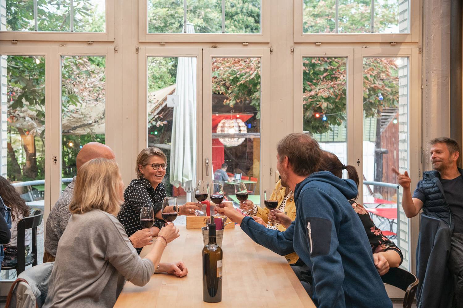 Industrielook mit grosszügiger Bar im Innenbereich und ein wunderbarer Garten unter Kastanien im Aussenraum: hier lassen sich Feste feiern. Die Beiz verfügt zudem über eine Küche, welche auch separat für Caterings in den anderen Räumen gemietet werden kann.
