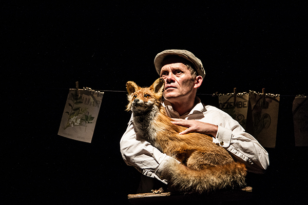 Im Zentrum der Bühne steht ein ausgestopfter Fuchs – ein gelebtes Leben, das vor den Augen der Zuschauer noch einmal abschnurrt. Doch die grosse Uhr, die über allem hängt, gerät ins Stocken, läuft rückwärts und die Zeit bekommt Risse.